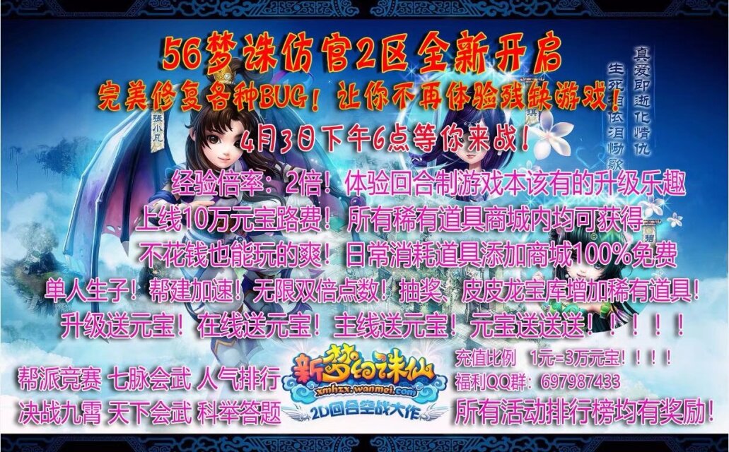 [Android和iOS] SSS级手游新区开放《56梦幻诛仙》全新比例服无后台ios安卓互通